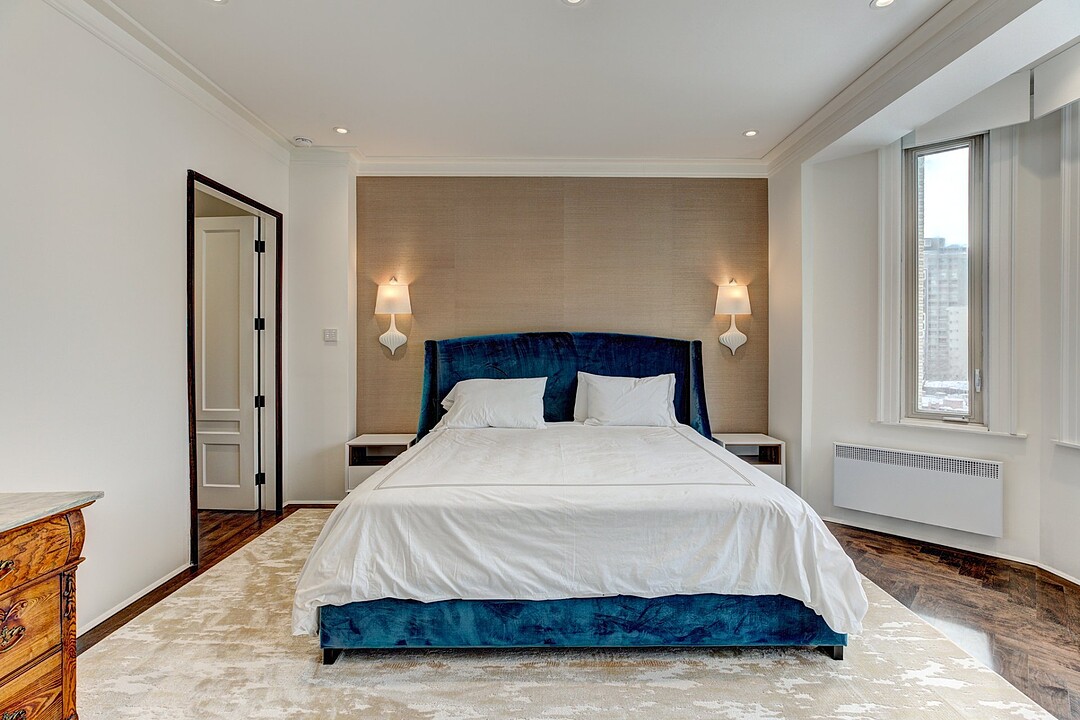 Located in Montreal's prestigious Golden Square Mile, this spectacular property combines two adjacent units at Le Linton - one of Montreal's finest Beaux-Arts architectural masterpieces. Completely redesigned with a sleek and polished transitional design, this 4 bedroom, 3+1 bathroom has been remodelled with no detail or expense spared. Main features include a grand primary suite with luxurious ensuite bathroom built with Italian slabs and custom walk in closet, gourmet kitchen with top of the line appliances, open concept living room/dining room with fabulous views and incredible sun exposure, 2 parking spaces ,2 storage lockers and more.