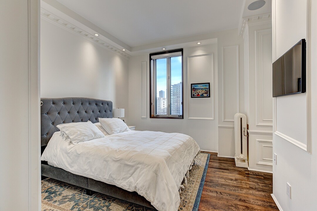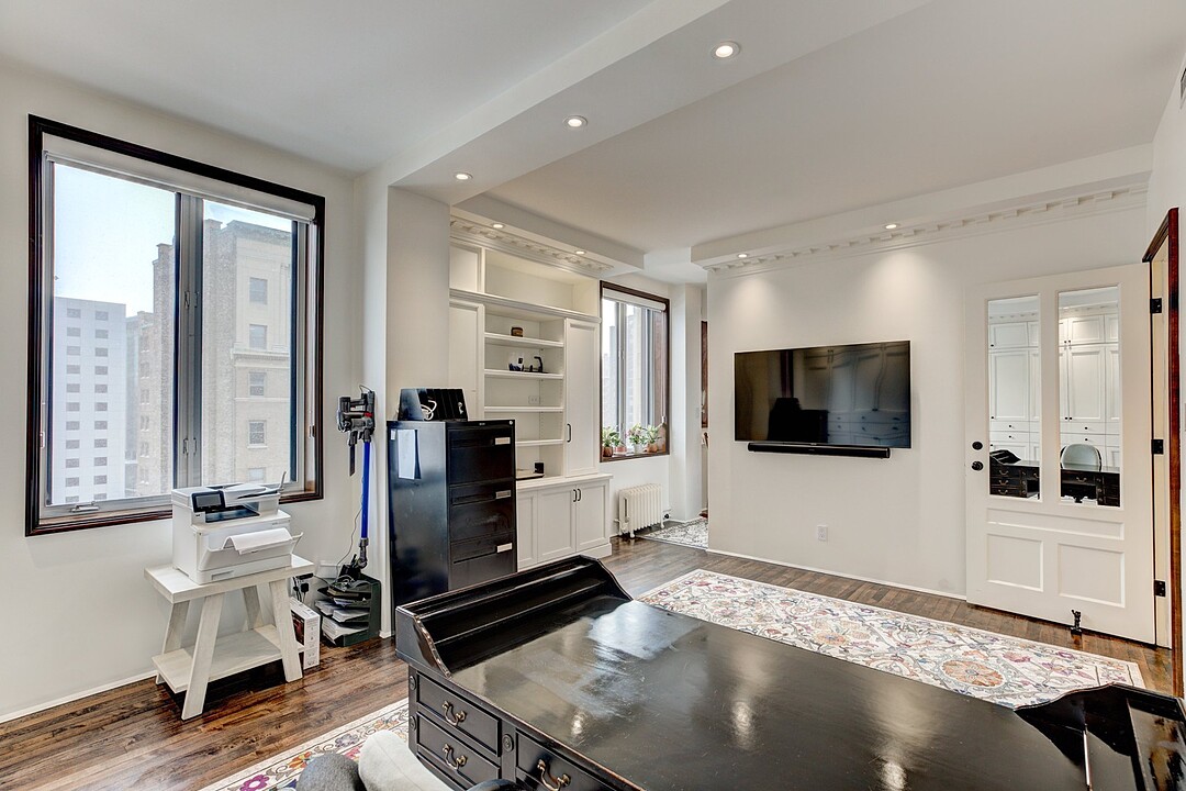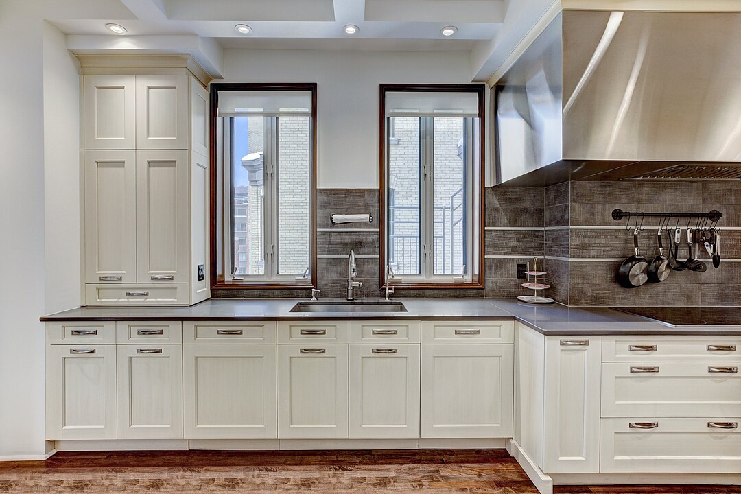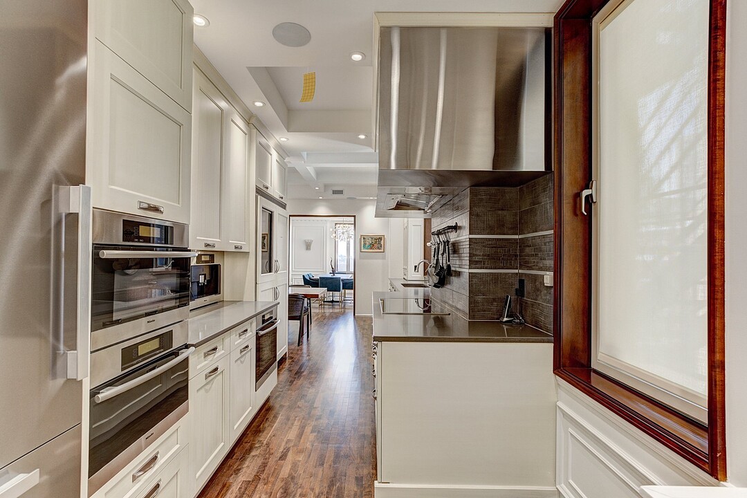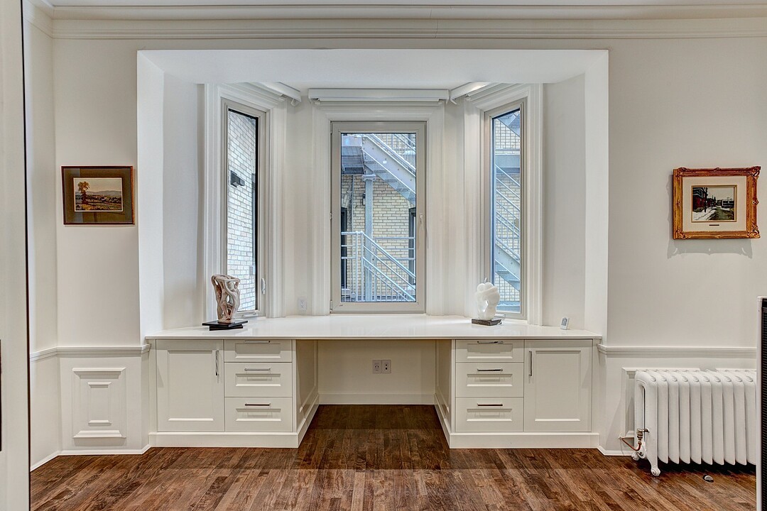 The apartment is characterized by its distinguished architectural details inspired by this one-of-a-kind heritage building. No detail was spared for achieving a result of the best quality possible. A ventilation system was newly installed throughout the whole residence. High quality hardwood floors were installed, as well as custom millwork cabinetry of the best kind.