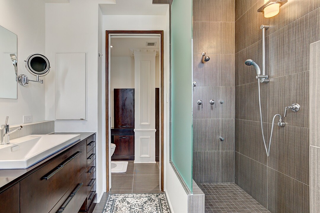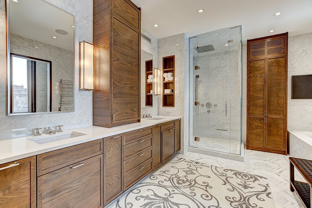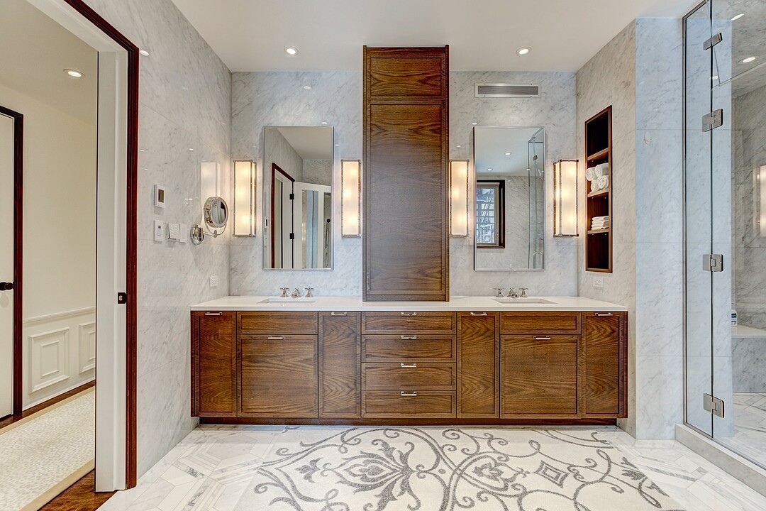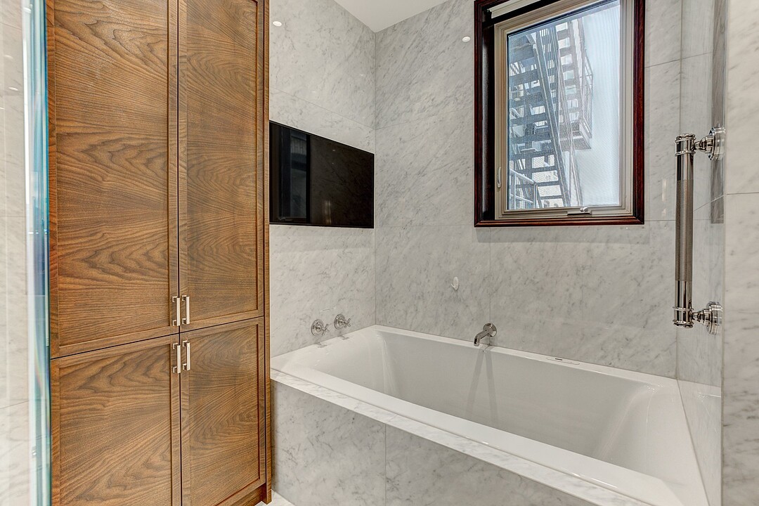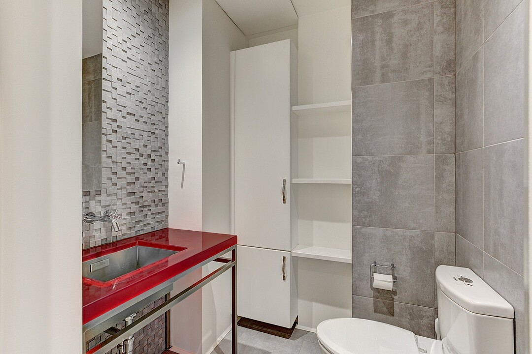 The apartment is characterized by its distinguished architectural details inspired by this one-of-a-kind heritage building. No detail was spared for achieving a result of the best quality possible. A ventilation system was newly installed throughout the whole residence. High quality hardwood floors were installed, as well as custom millwork cabinetry of the best kind.