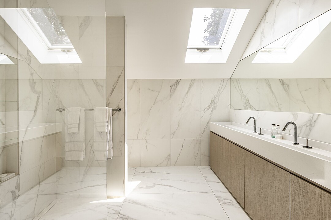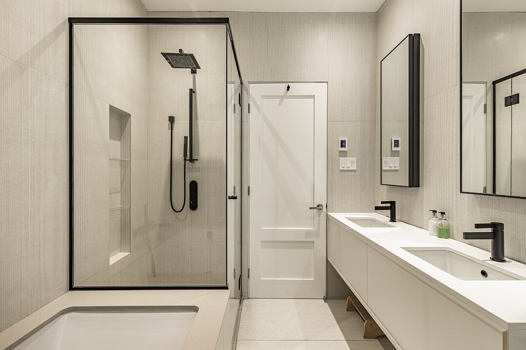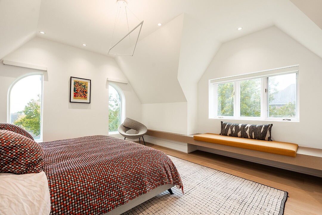 Upstairs, the home offers two bright children's bedrooms with custom built-ins and a large family bathroom. The reimagined primary suite includes a luxurious ensuite bathroom and plenty of built-in closets.
