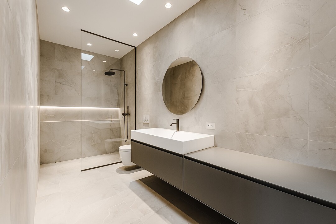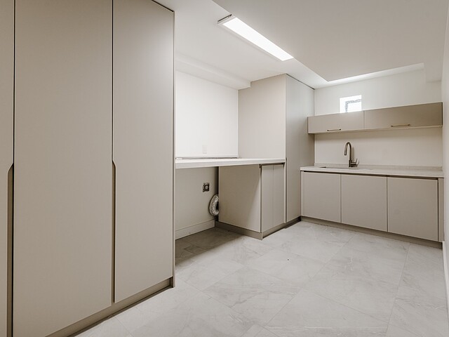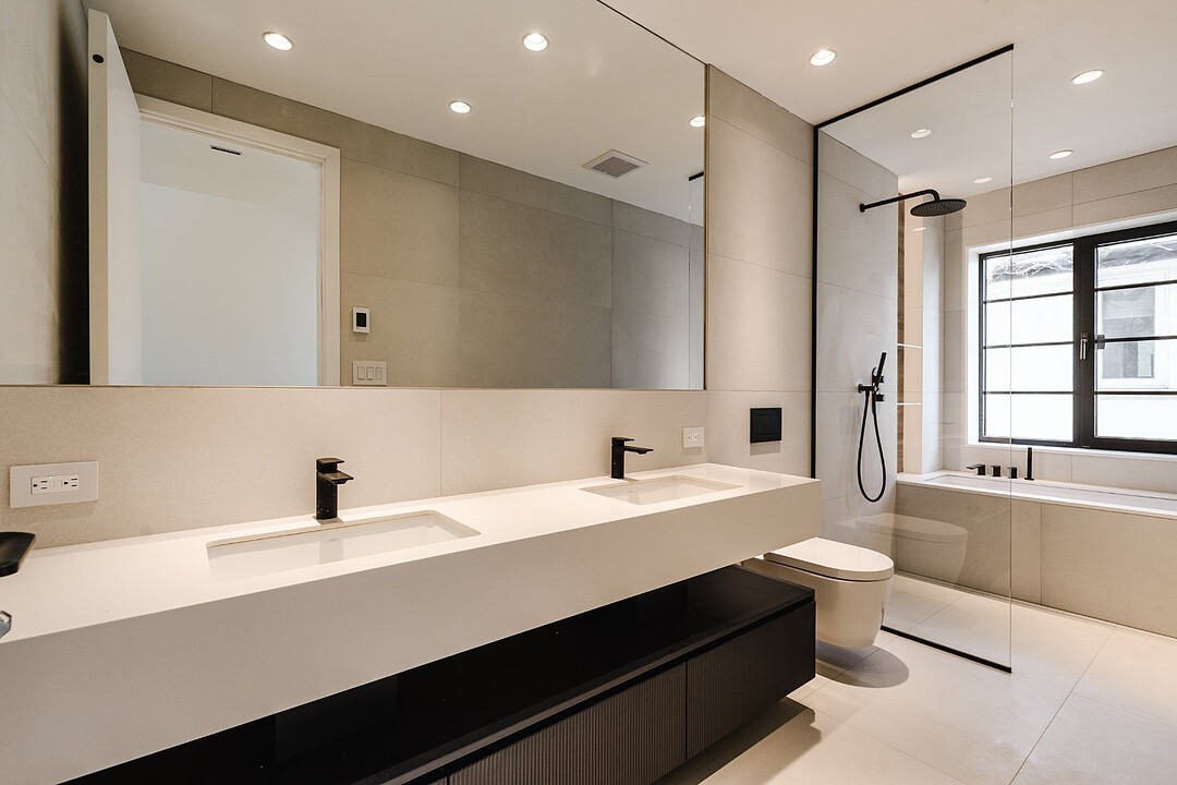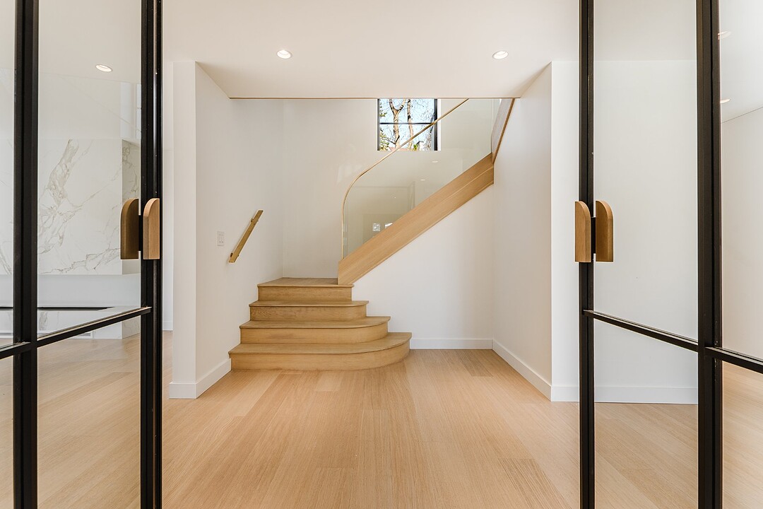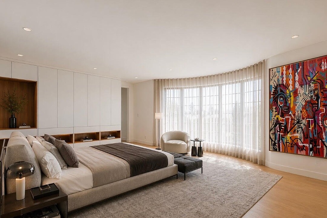 Defined by clean lines, soaring volumes, and an abundance of natural light, the home unfolds through a series of beautifully proportioned spaces designed for both grand entertaining and intimate daily living. Expansive windows frame tranquil garden views while bathing the interiors in sunlight throughout the day.