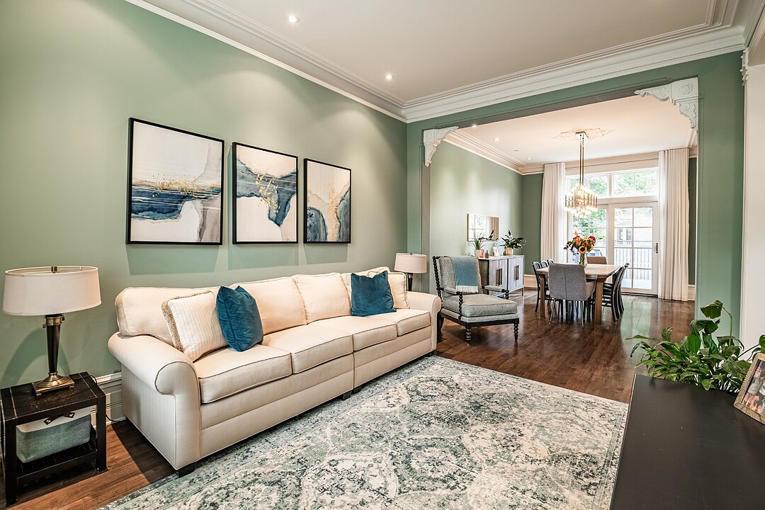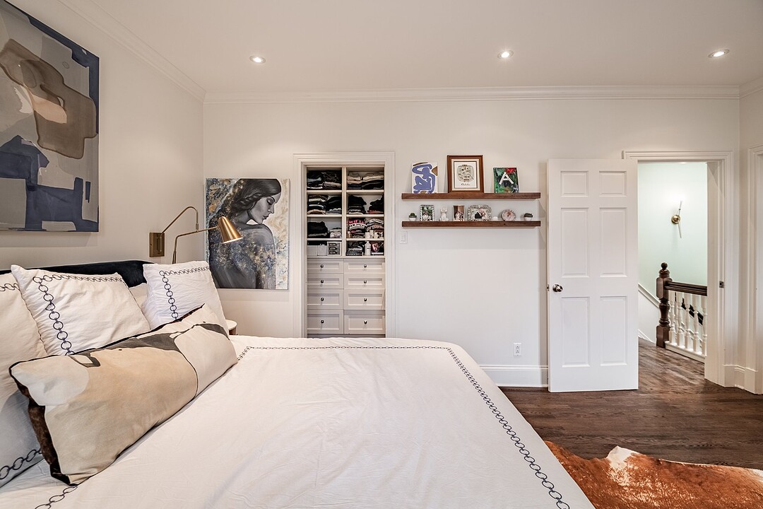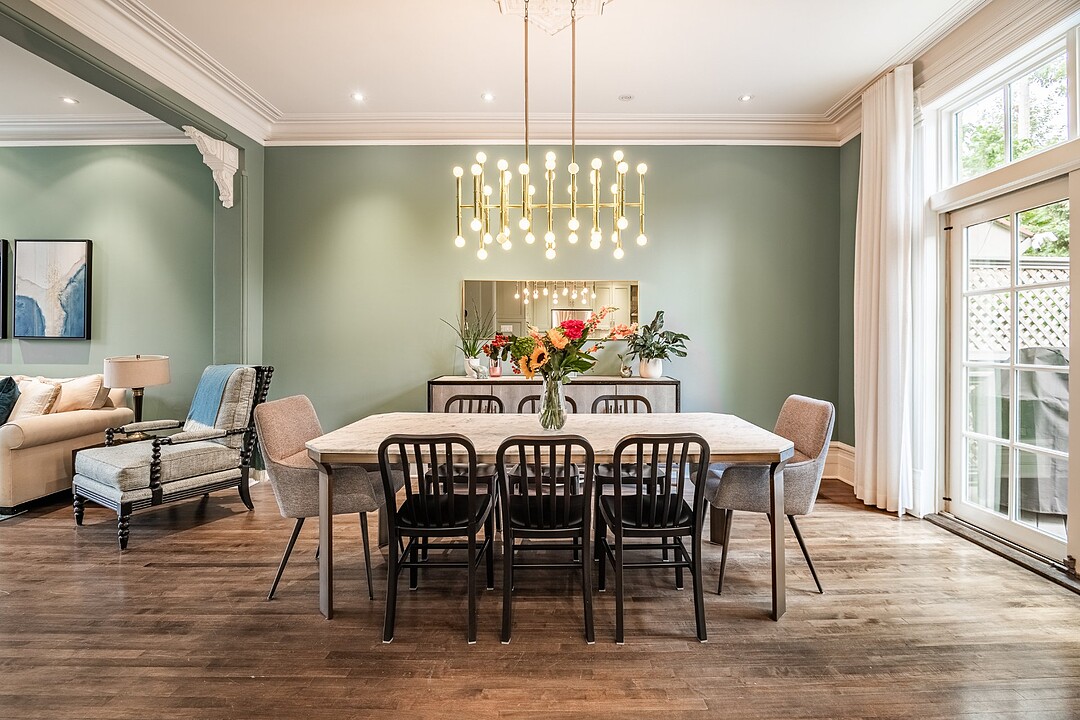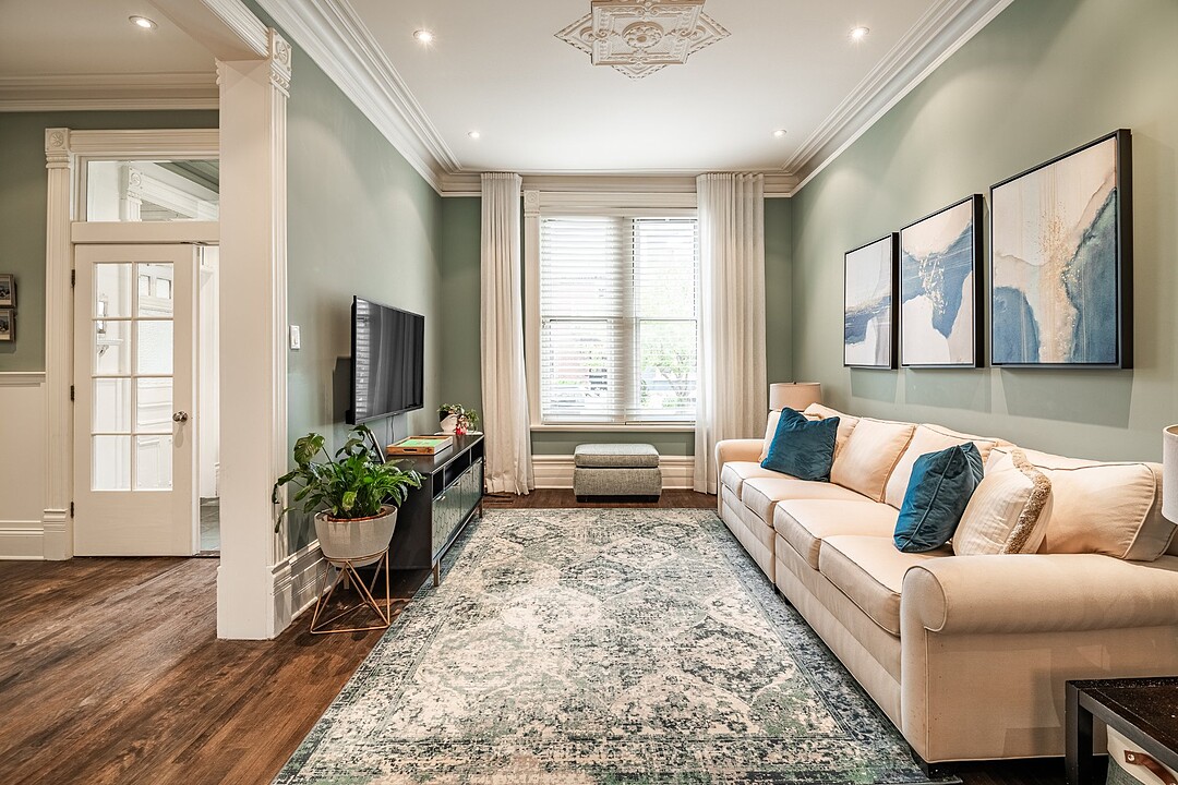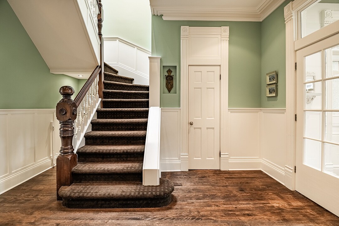 Dès votre entrée, vous êtes accueilli par un vaste vestibule doté d'un grand placard, idéal pour ranger vos vêtements d'extérieur et vos accessoires saisonniers. L'harmonieux rez-de-chaussée offre un salon baigné de soleil, orné de moulures d'origine et de détails architecturaux intemporels. À côté se trouve une élégante salle à manger, agrémentée de portes françaises qui s'ouvrent sur une grande terrasse privée, idéale pour les repas en plein air ou les réunions le week-end.