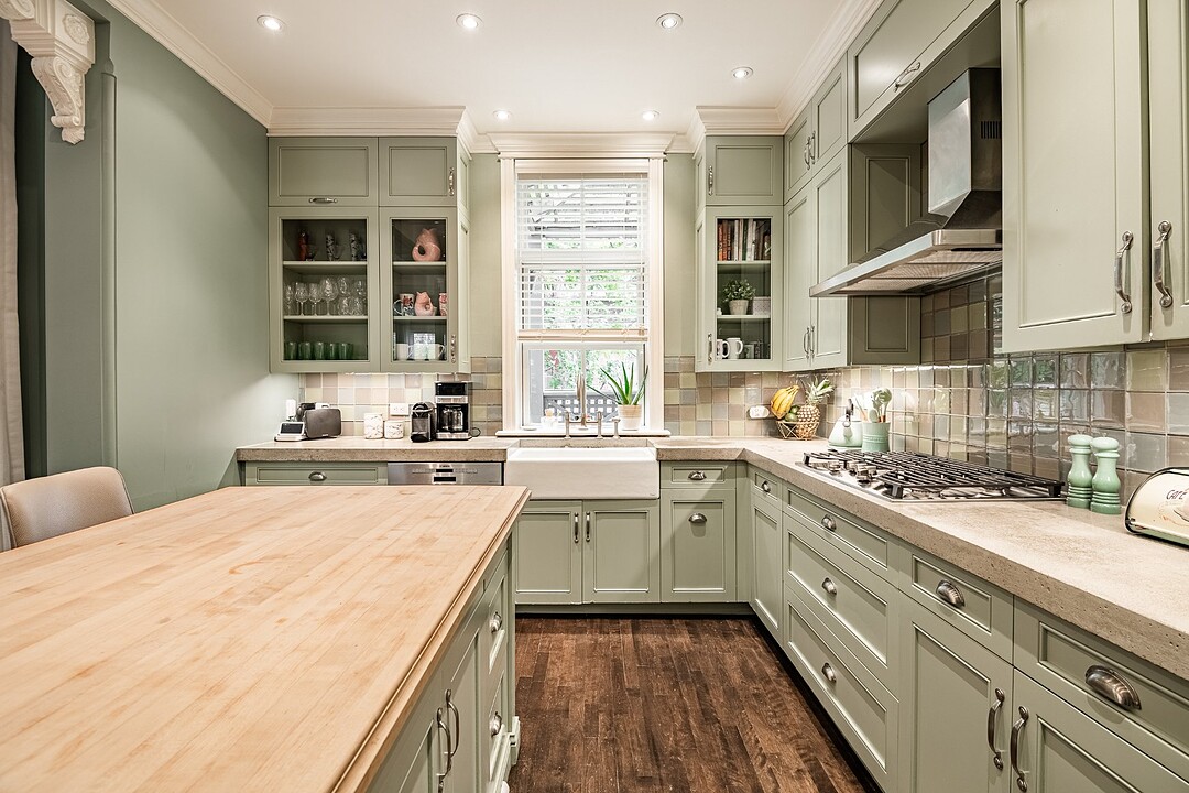 Le coeur de la maison est la cuisine entièrement rénovée, équipée d'une cuisinière au gaz, d'armoires offrant beaucoup d'espace de rangement et d'un îlot central alliant style et fonctionnalité. Une salle d'eau discrètement située vient ajouter une touche de commodité sans compromettre l'esthétique.