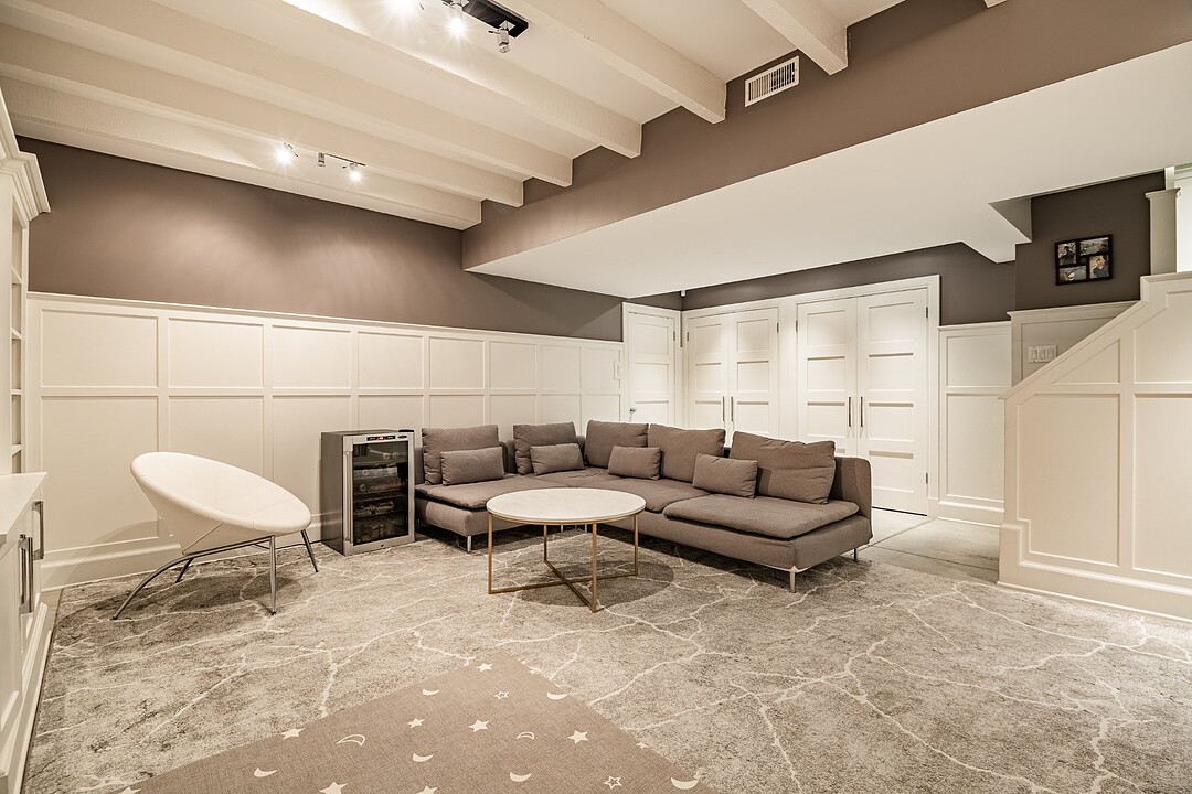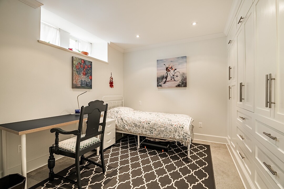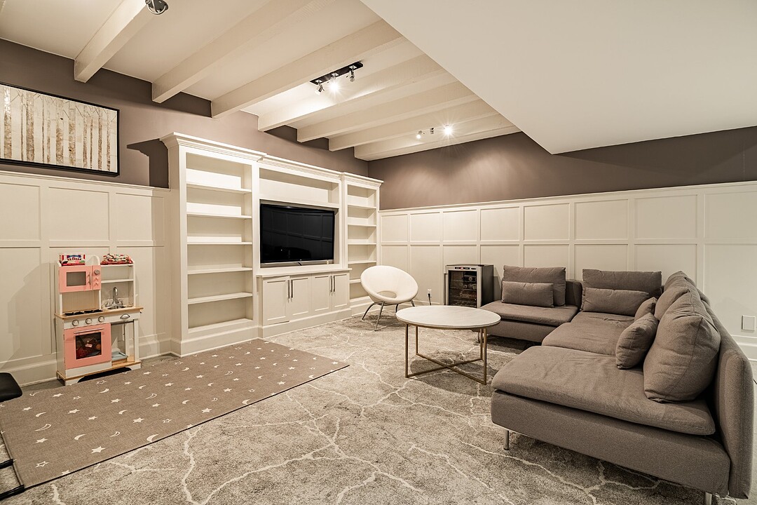 Le sous-sol entièrement aménagé confère une polyvalence impressionnante à la maison. Il comprend une spacieuse salle familiale avec du rangement intégré fait sur mesure; idéale pour les soirées cinéma ou les jeux, ainsi qu'une chambre supplémentaire ou un bureau offrant beaucoup d'espace de rangement. Une grande salle de lavage offre une excellente fonctionnalité, et une salle de bain complète avec cabine de douche rend cet étage parfait pour les invités, la famille élargie ou le personnel de maison.