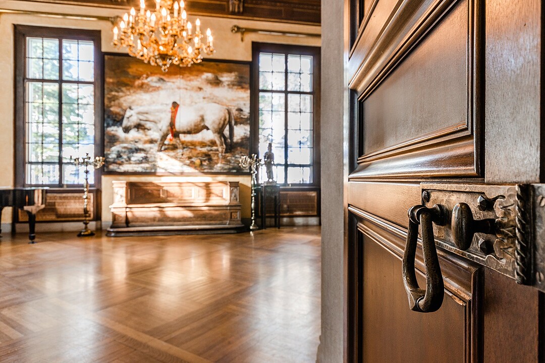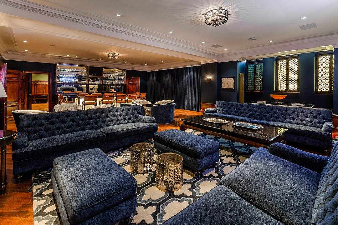 Dès leur entrée, les invités sont accueillis par la spacieuse « High Room » où la lumière danse sur des plafonds à caissons de 21 pieds, s'harmonisant avec la beauté exquise d'un banc à l'origine commandé en 1424 par les honorables pères de la ville de Sienne en Italie. La chaleur d'un foyer importé en pierre du temps de la Renaissance confère un charme intime à cet espace grandiose.