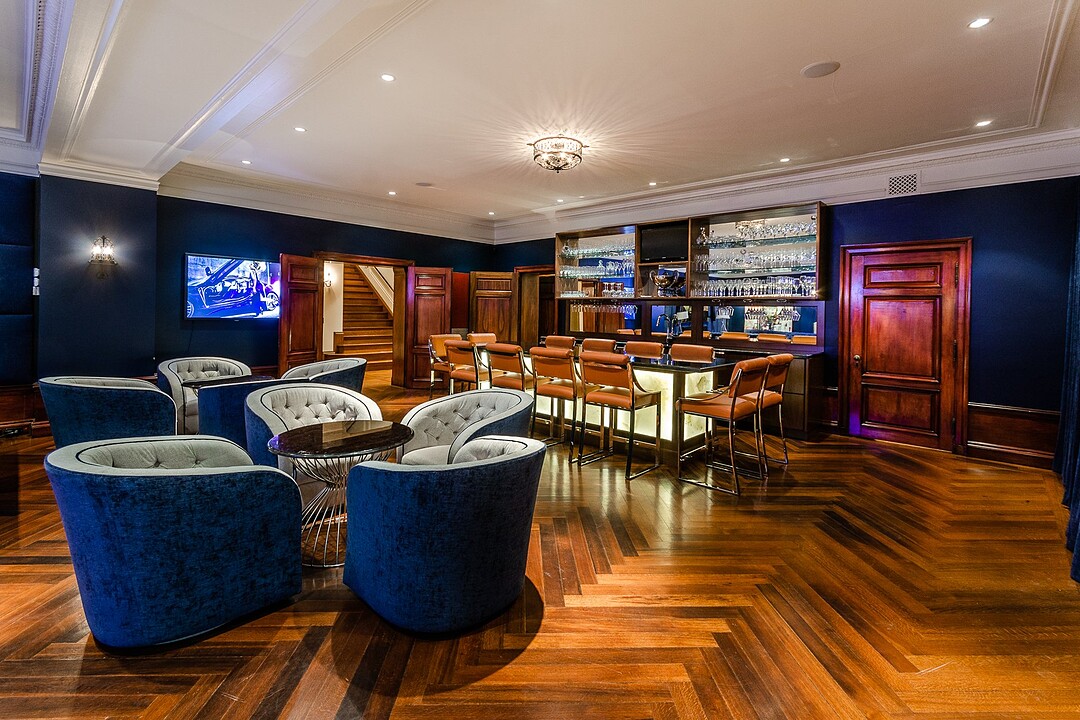 Le sous-sol a été conçu pour les loisirs et la fonctionnalité; il loge une somptueuse salle familiale, une salle de jeu lambrissée qui se transforme en salle de conférence sophistiquée, et une cave à vin soigneusement aménagée.