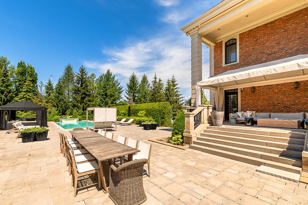 Continuer la lectureEn entrant dans cette maison à couper le souffle vous êtes accueilli par un grand vestibule avec de hauts plafonds de 18 pieds, donnant un ton impressionnant au reste de la maison. Le rez-de-chaussée comprend un salon formel orné d'un foyer au gaz, parfait pour les réunions intimes, et une salle à manger formelle idéale pour les dîners élégants. Le salon spacieux, baigné de lumière naturelle grâce à de grandes portes vitrées, comprend un coin télévision et un espace cinéma, offrant un refuge confortable pour les soirées cinéma. Le rez-de-chaussée dispose également de planchers chauffants dans le hall principal, la cuisine et les pièces formelles, ajoutant à l'ambiance luxueuse. Le coeur de cette maison est la cuisine ultramoderne, équipée d'electros haut de gamme, d'une cuisinière à gaz et de grandes fenêtres offrant une vue pittoresque sur la cour magnifiquement paysagée. La cour elle-même est une véritable oasis, dotée d'une superbe piscine d'eau salée, et d'un aménagement paysager méticuleux. Il y a deux terrasses, dont une avec une pièce accessible uniquement de l'extérieur, équipée de rangements pour les essentiels extérieurs et d'une salle de bain complète pour vous assurer de ne jamais avoir à entrer dans la maison mouillé par la piscine. En montant le grand escalier, vous trouverez le niveau supérieur, qui abrite quatre luxueuses suites junior, chacune avec un dressing et une salle de bains privative. La suite principale est un sanctuaire de confort et d'élégance, dotée de deux salles de bains et placards, d'un coin salon avec un grand canapé face à la télévision et d'un espace de stockage des bagages. La suite principale comprend également une chute à linge pratique qui mène directement à la buanderie. Le design de la suite est un mélange harmonieux de blancs éclatants pour l'épouse et de bruns et crèmes riches pour le mari, offrant un luxe personnalisé pour tous deux. Le sous-sol offre un espace de vie supplémentaire, dont deux chambres, salle de bain complète, placard en cèdre, une buanderie et une pièce comme gym ou bureau et une grande chambre familiale. Il y a suffisamment d'espace de rangement, garantissant que tous vos besoins sont satisfaits. La propriété comprend également un système d'alarme de pointe et des caméras pour plus de sécurité. Garage pour deux voitures avec une troisième porte de garage supplémentaire qui mène à un espace capable d'accueillir quatre autres voitures, accessible via une pente.Situé dans un quartier familial avec d'excellentes écoles et parcs à proximité.