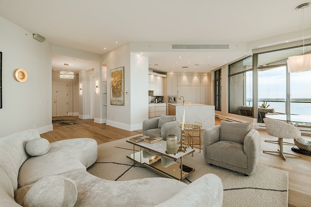 Les résidents des Sommets sur le Fleuve ont accès à des prestations haut de gamme, notamment des piscines intérieure et extérieure, un gym entièrement équipé, un sauna, un bain à remous, une salle de conférence, un terrain privé au bord de l'eau, des suites d'invités et de nombreuses places de stationnement pour les visiteurs. L'immeuble offre également des services de conciergerie complets et un service de portier/sécurité 24h/24 et 7j/7 pour une tranquillité d'esprit totale.