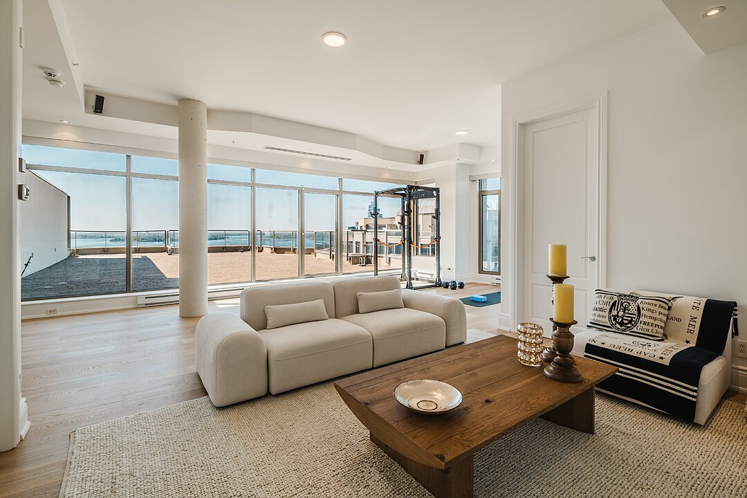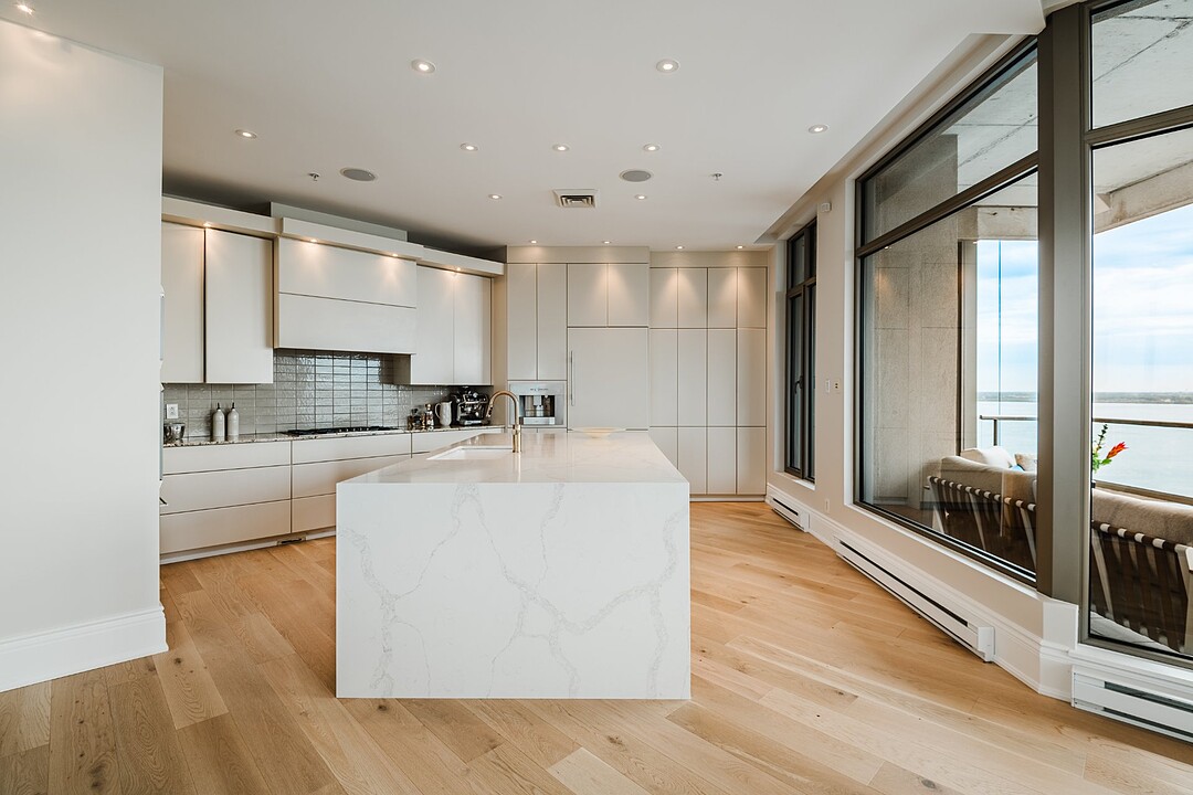Découvrez une luxueuse aire habitable de plus de 3 300 pi.ca. dans ce penthouse de deux étages méticuleusement rénové, situé dans le prestigieux complexe Les Sommets sur le Fleuve. Offrant une vue imprenable sur l'eau et le golf, orientée sud et sud-ouest, cette résidence propose des fenêtres pleine hauteur, des planchers en bois franc, de hauts plafonds et un élégant plan à aire ouverte.
