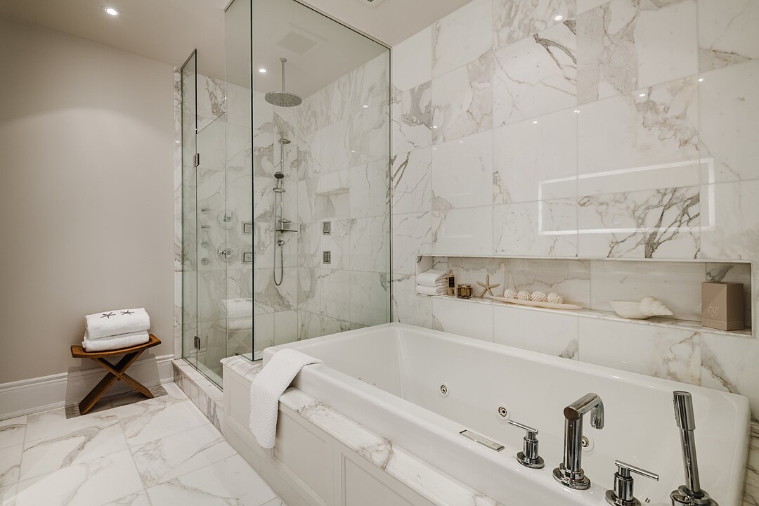 La suite principale dispose d'une penderie sur mesure et d'une luxueuse salle de bain avec installations et finitions haut de gamme. Deux chambres supplémentaires (dont une avec sa propre salle de bain attenante), une élégante salle d'eau, une salle de lavage entièrement équipée et du rangement complètent cet étage.
