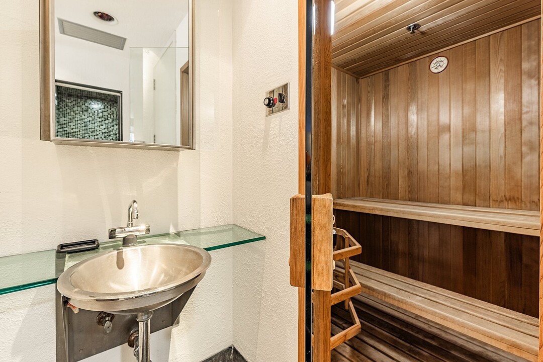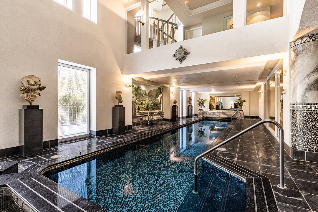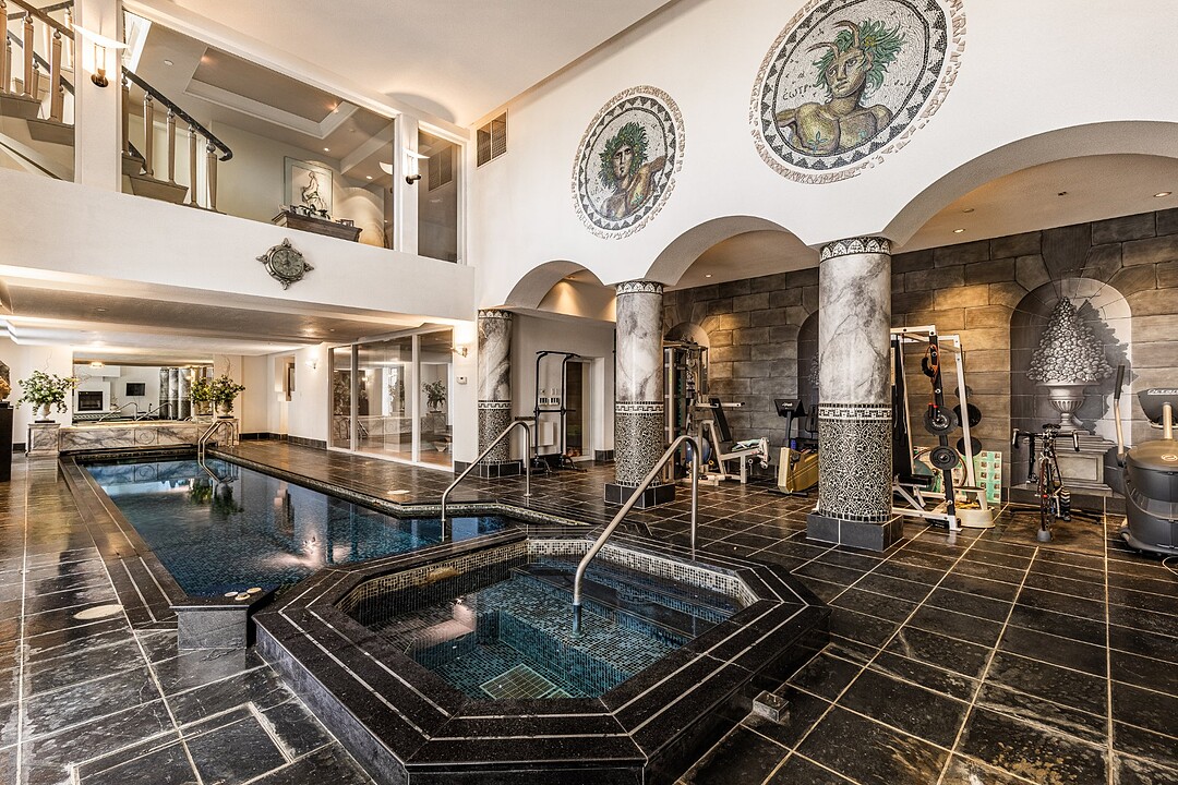Un des atouts majeurs de cette propriété est sa piscine intérieure située au rez-de-jardin, agrémentée d'un spa, d'une salle de sport et d'un sauna, pour une expérience unique digne d'un centre de villégiature tout au long de l'année, en parfaite harmonie avec l'architecture de la maison. Parmi les autres points forts, citons un ascenseur, un garage double et une large allée chauffée offrant de nombreuses places de stationnement.