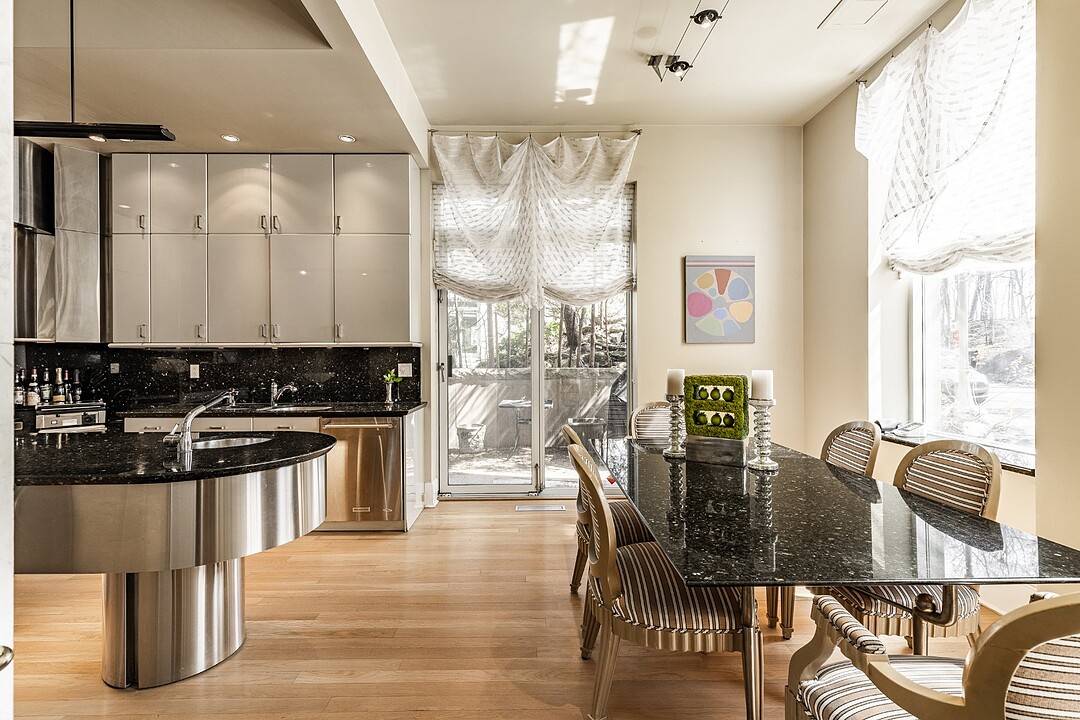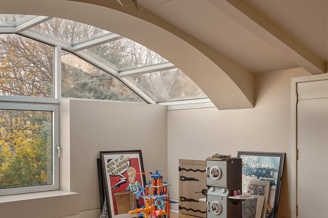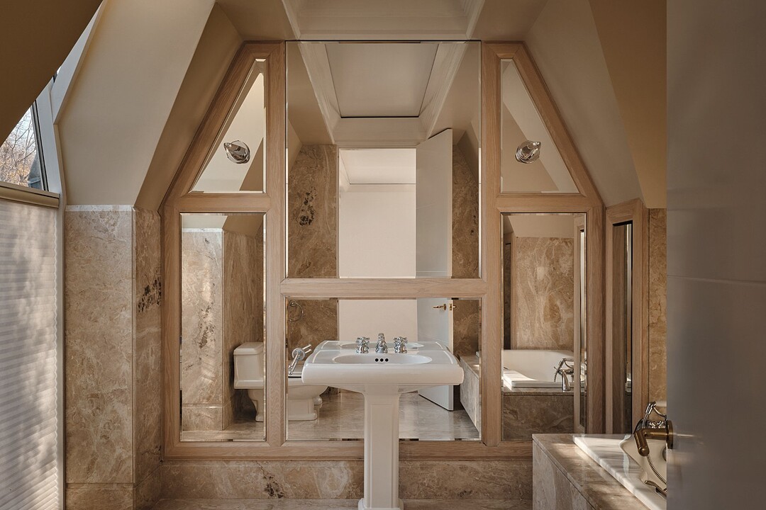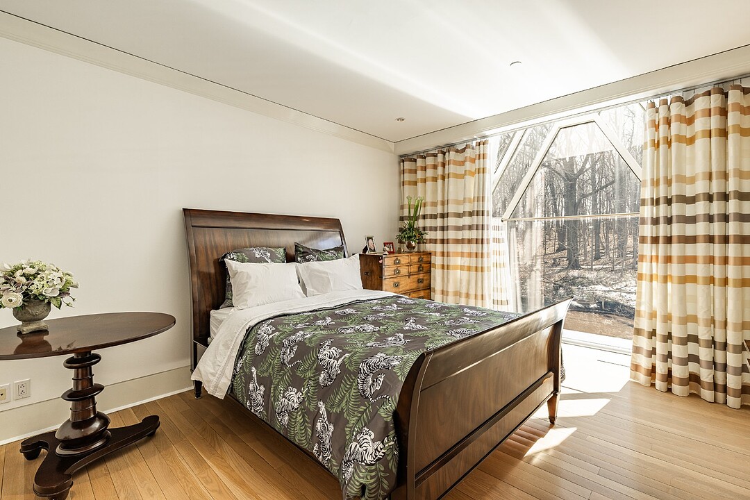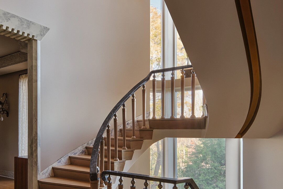 Le rez-de-chaussée propose de superbes pièces pour recevoir, de vastes espaces de vie formels et informels, ainsi qu'une configuration soigneusement pensée qui allie espace et intimité. De grandes fenêtres encadrent des vues sereines sur le bois, faisant entrer la nature au coeur de la maison.